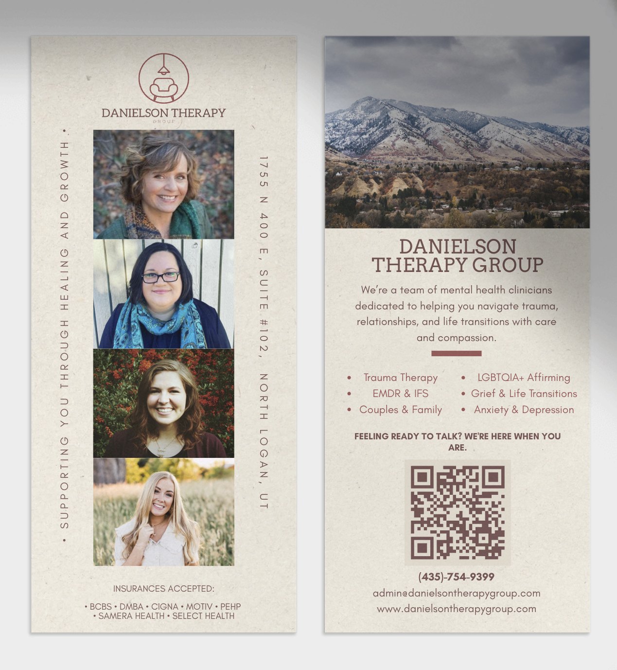 Along the way, I also designed business cards and rack cards for the team. I mocked up two versions (because options are love languages), and — bless them!!!! — they chose my favorite one. The result? A suite of materials that feel just as supportive and thoughtful as the care they provide.